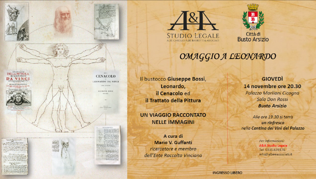 In occasione della mostra Omaggio a Leonardo promossa dall’Assessorato alla Cultura del Comune di Busto Arsizio, A&A Studio Legale organizza un evento collaterale imperdibile. Nell’incontro serale, che si terrà giovedì 14 novembre alle ore 20.30 presso la Sala Don Rossi di Palazzo Cicogna, verranno mostrate opere a stampa di Giuseppe Bossi e degli esemplari unici […]