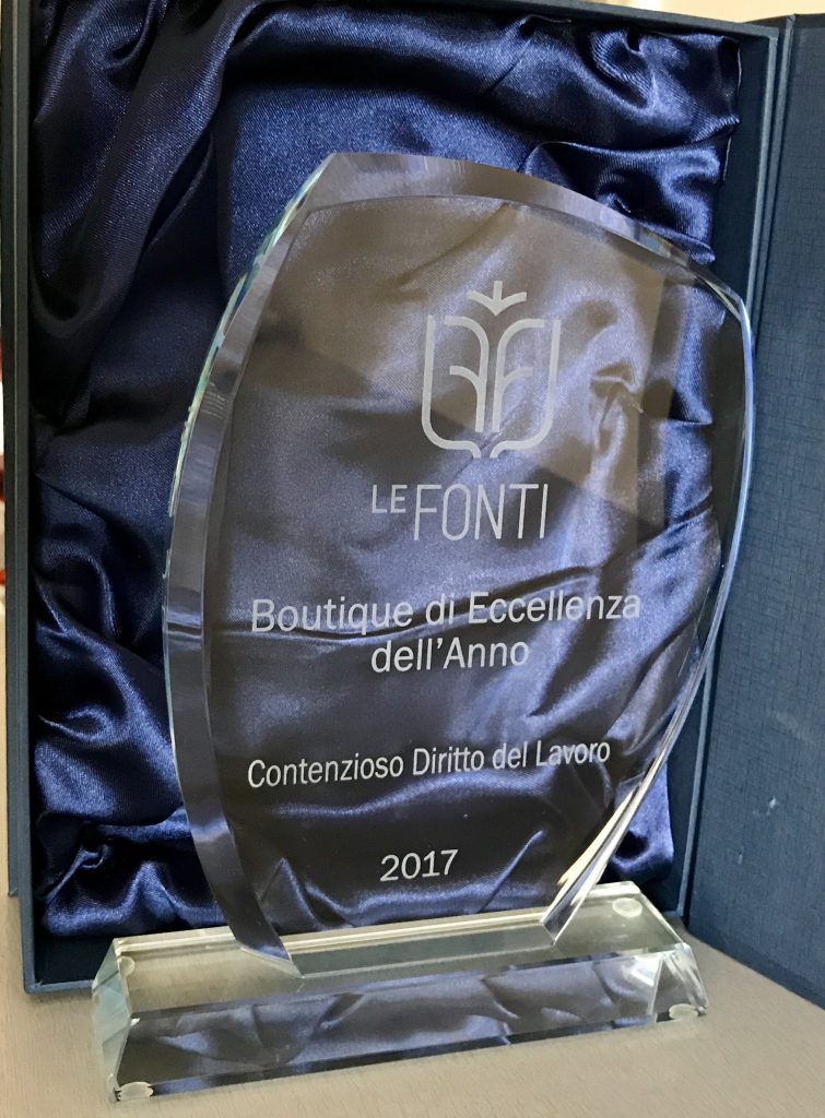 Mercoledì 7 giugno a Palazzo Mezzanotte, sede della borsa italiana a Milano, si è svolta la cerimonia di premiazione di Le Fonti Awards, evento volto a celebrare le eccellenze del mercato legale italiano e internazionale. Lo studio è stato premiato BOUTIQUE DI ECCELLENZA DELL’ANNO 2017 CONTENZIOSO DIRITTO DEL LAVORO Per seguire in modo incisivo il […]