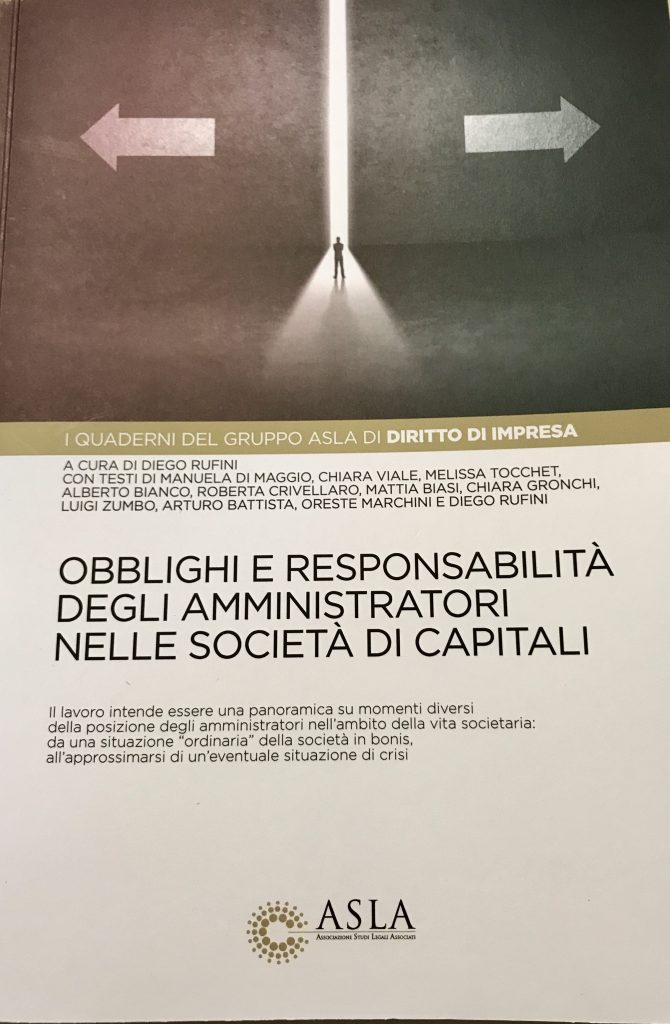 Il gruppo di Asla di Diritto di Impresa ha pubblicato il quaderno “OBBLIGHI E RESPONSABILITA’ DEGLI AMMINISTRATORI NELLE SOCIETA’ DI CAPITALI”. La partner Chiara Viale ha contribuito alla stesura del libro occupandosi degli obblighi e delle responsabilità degli amministratori nella predisposizione della struttura organizzativa sociale. Per maggiori informazioni info@albeeassociati.it