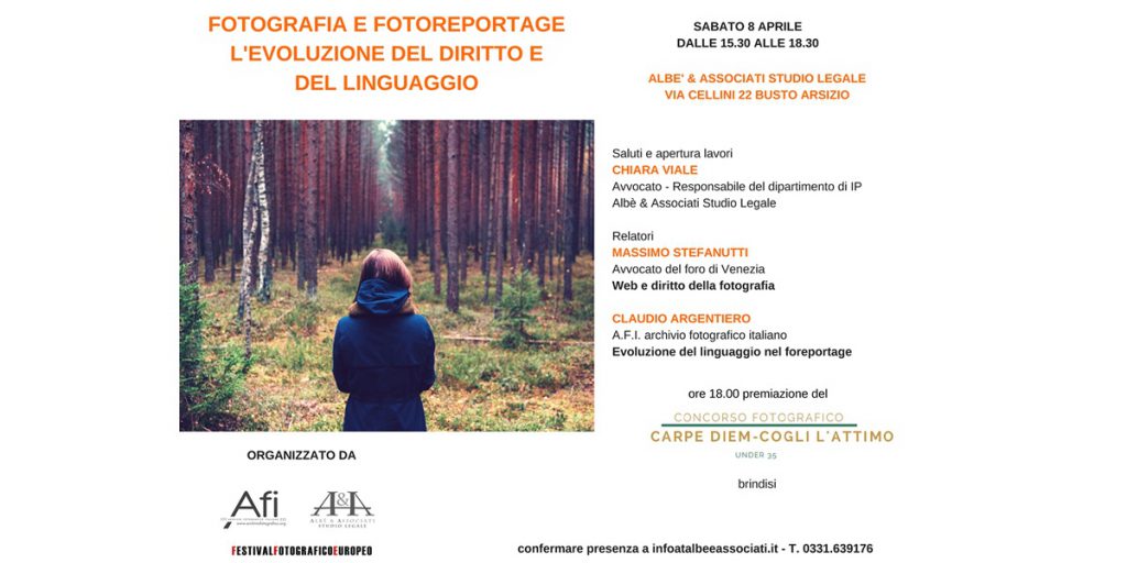 Nel contesto del Festival Fotografico Europeo 2017, sabato 29 aprile, alle ore 11.00, Afi – Archivio Fotografico Italiano premierà il vincitore del concorso fotografico Carpe Diem Cogli l’Attimo under 18. Il miglior autore si aggiudicherà una macchina fotografica digitale offerta dallo studio legale Albè, ed altri tre autori degni di menzione speciale riceveranno dei volumi […]