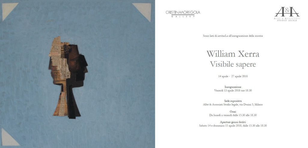 Nel nostro studio di via Durini 5 a Milano, la Galleria Cristina Moregola presenta, dal 14 al 27 aprile 2018, con inaugurazione venerdì 13 alle ore 18.30, la mostra William Xerra “Visibile sapere”. Un’accurata scelta di opere storiche datate dai primi anni Settanta fino agli inizi del Duemila ripercorre i momenti più significativi del lavoro di […]